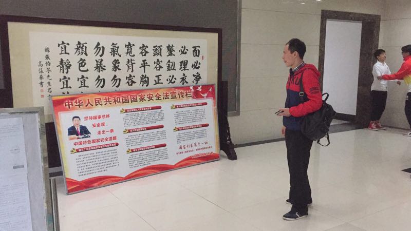 2、2018年4月8日至16日,在行政楼、教学楼、食堂等学生密集处举办国家安全图片展活动,展板总计12块,图片展以《国家安全法》、《反恐怖主义法》、《反间谍法》为主要内容,同时发放宣传材料20余册,吸引众多师生驻足观看,反应热烈。