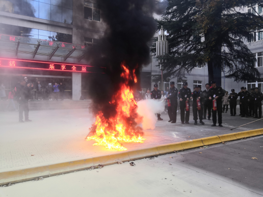 讲座结束后,在教学楼前进行了消防灭火实战演练。演练中,邹飞洋教官向师生演示了灭火器的使用方法,对参与人员边指导边实践,在模拟火灾现场的环境下进行了实地灭火练习,使参与者在演练过程中都得到了灭火操作实践体验。