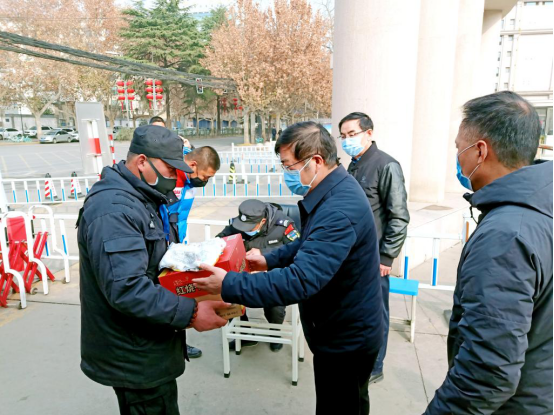 2月8日上午,党委书记黄道峻、校长朱元利、副校长陈彦、谢英慰问了保卫处疫情防控一线值守的工作人员,并为他们加油鼓劲。