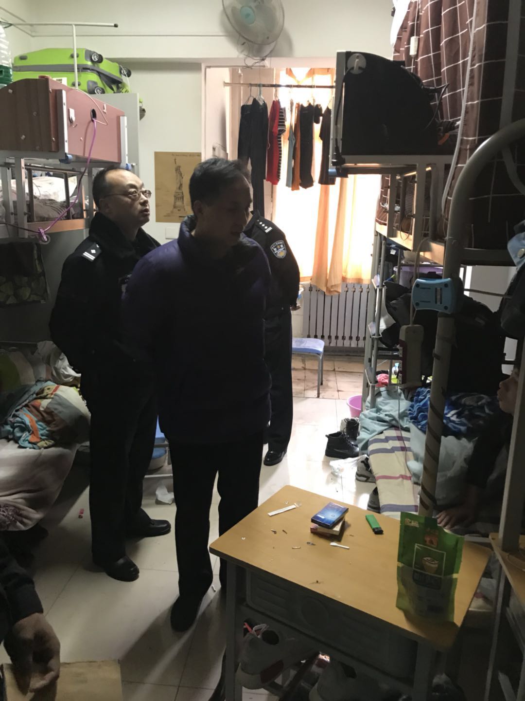 12月7日下午,根据学校党政的安排,保卫处在西安市公安局及辖区派出所的指导下,对学生公寓、场馆、图书馆等人员密集场所进行了安全检查,发现存在几点问题:1、学生私拉乱接电线,使用劣质自购插线板;2、个别学生离开宿舍时,未切断电源,电灯、电脑、充电器等电器还处于带电状态,容易引发火灾;3、男生宿舍内吸烟现像普遍烟头乱丢,环境卫生较差,安全隐患堪忧;4、学生公寓内,个别学生利用楼梯走廊、安全通道凉晒衣物,堆放杂物,堵塞消防通道。