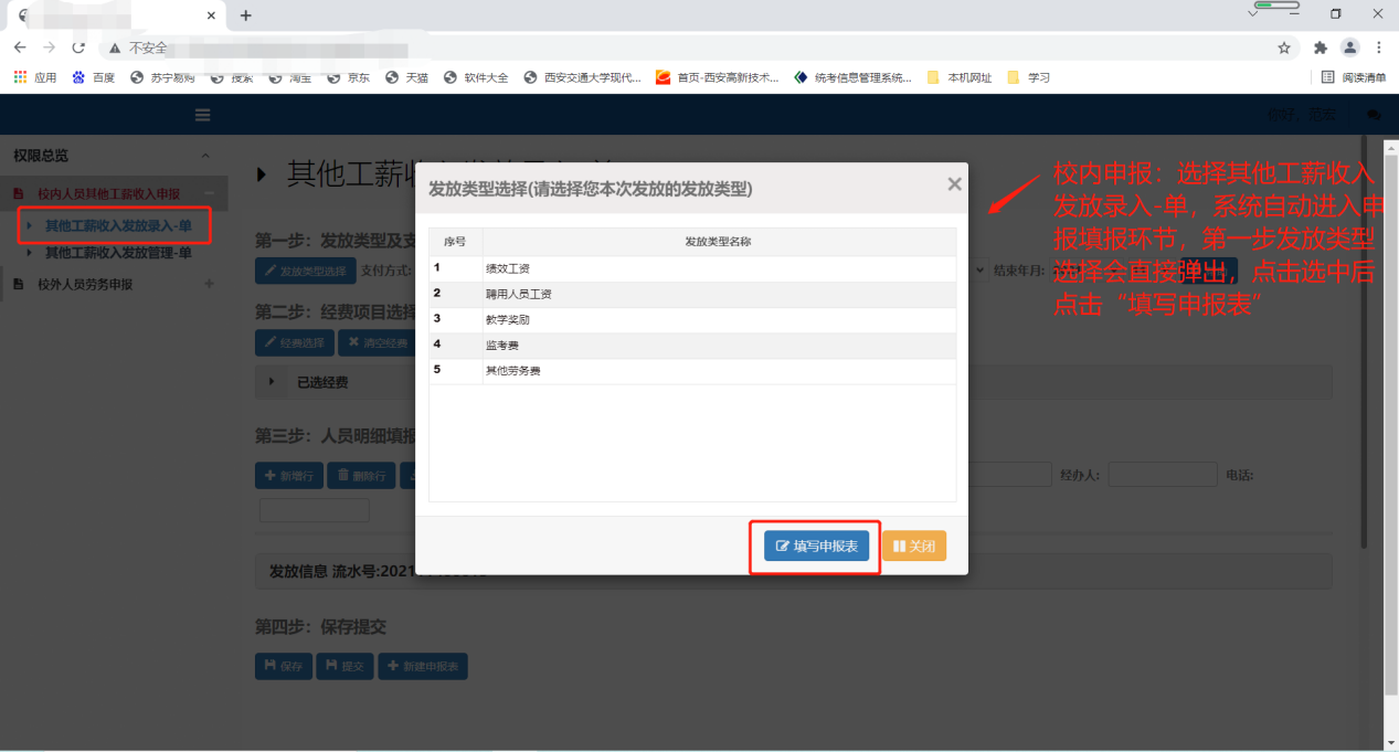 第一步发放类型选择会直接弹出,点击选中后点击“填写申报表”