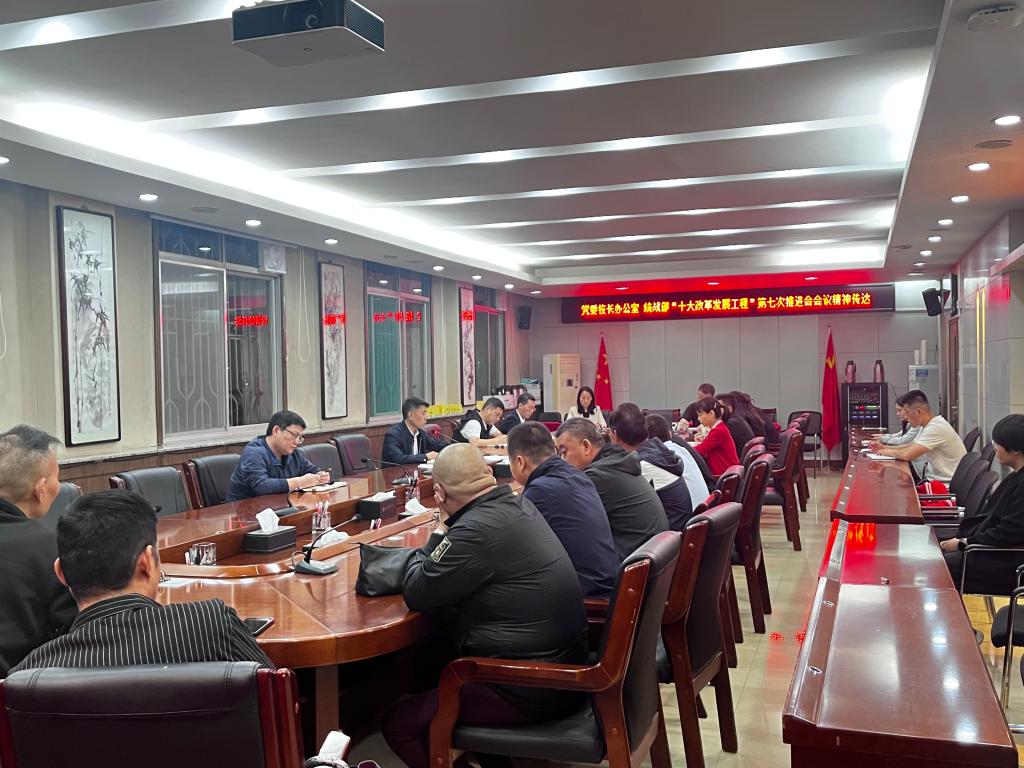 办公室全员覆盖传达学习会议精神,全体同志认真学习、全面吸收第七次推进会会议精神,会上,明确工作部署安排,细化工作措施,压实责任,确保传达学习到位,各项重点工作落实落细。