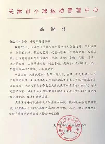 天津市小球运动管理中心及天津男手球队也被这温暖的一幕所感动,送上了他们的最诚挚的感谢!