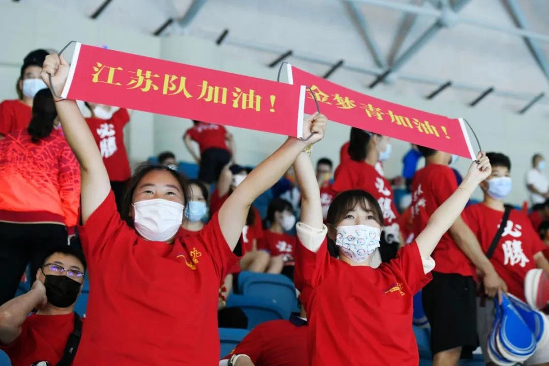 江苏“红魔”拉拉队现场为陕西“女手”加油助威。
