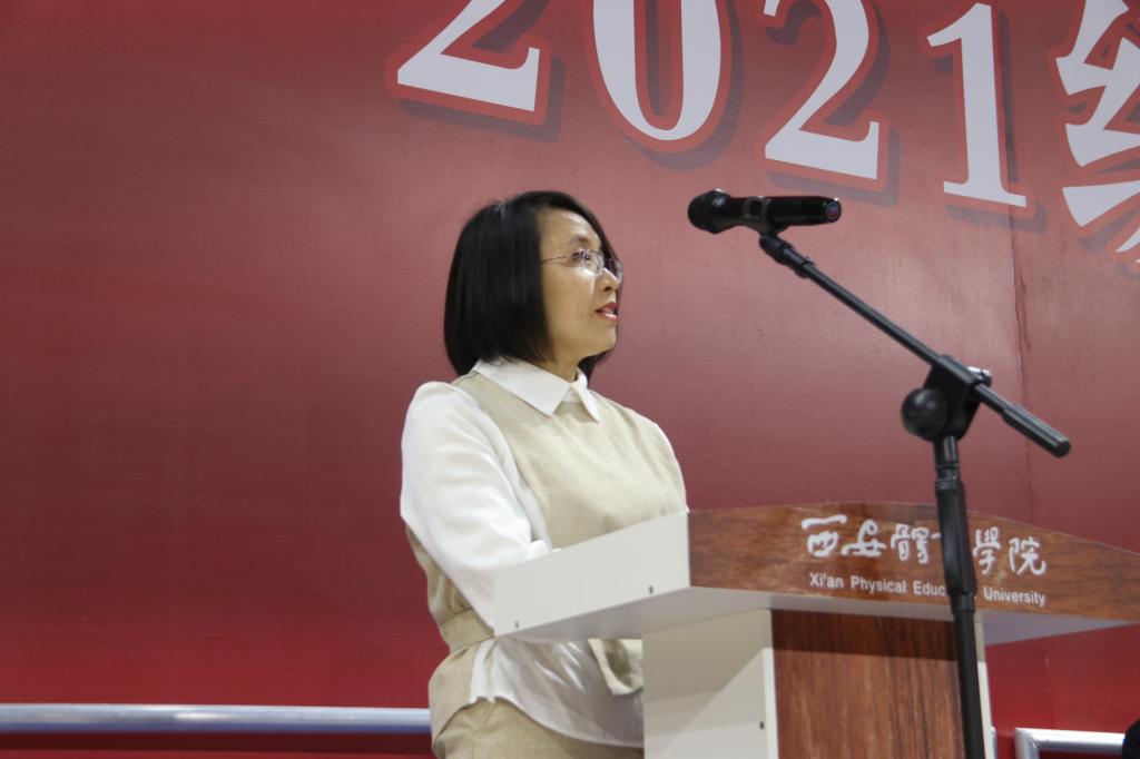 体育教育学院教授张晓莉作为教师代表发言,她为2021级新生们分享了四点上大学感悟:首先,要培养和塑造体育精神,使自己成为可堪大任的时代新人;其次,养成“自主学习、终身学习”的习惯,积极向上、奋进自我,使人生更加精彩;再次,坚持锻炼、完善自己,养成终身体育锻炼的习惯,塑造自强自律的人生品格;最后,在未来大学生活中,做好个人职业和人生发展的规划,明确人生目标,促进自身发展。