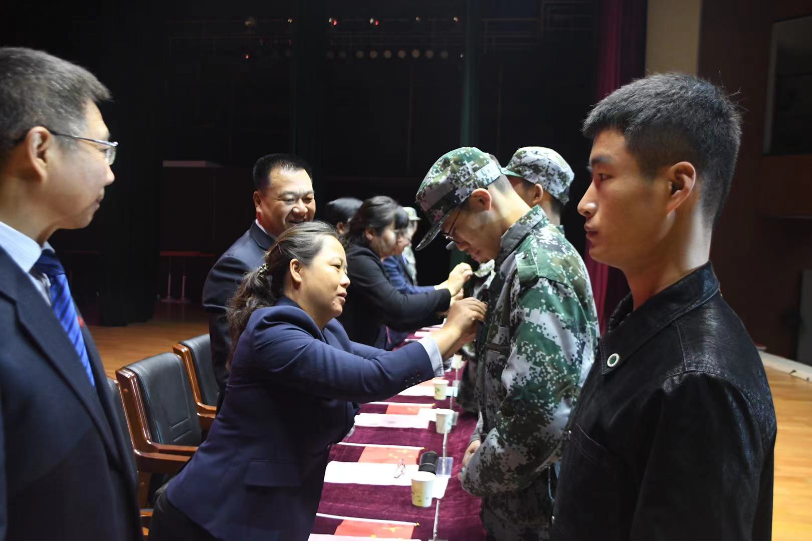 全体校领导给新生代表佩戴校徽
