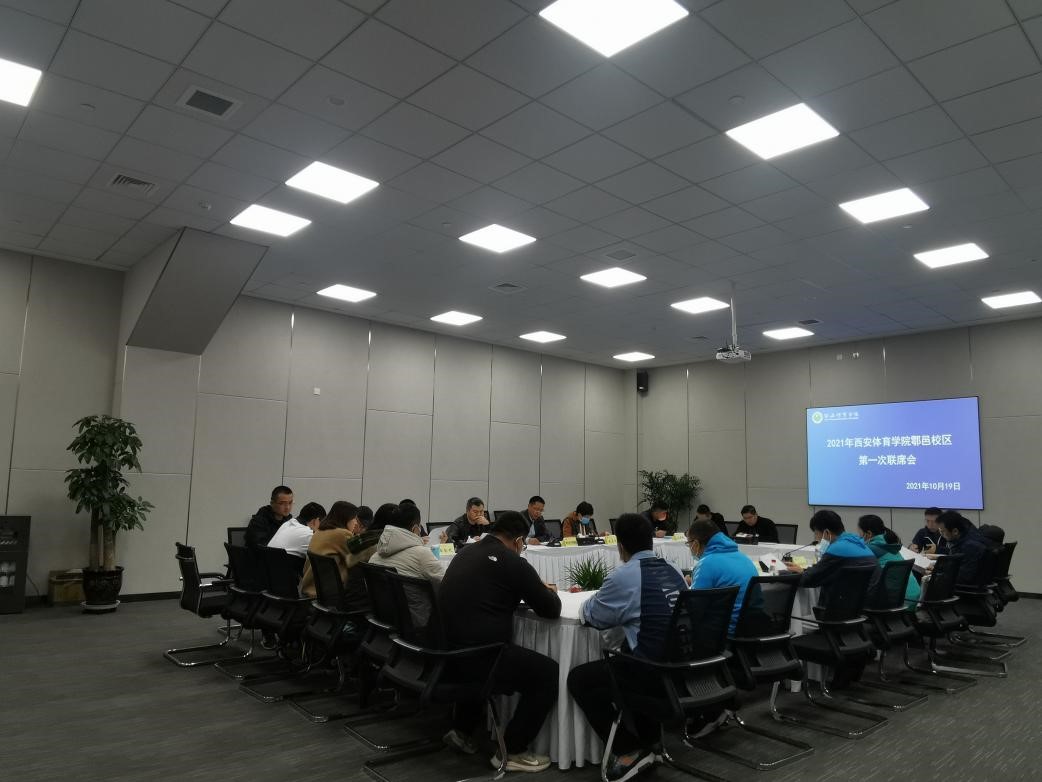 2021年10月19日下午,鄠邑校区管理委员会召开了2021年秋季学期第一次联席会议暨开学一周工作情况通报会。现驻校区的六个二级学院、基建处、后勤处、网络中心、校医院等部门负责人和辅导员参加了会议。