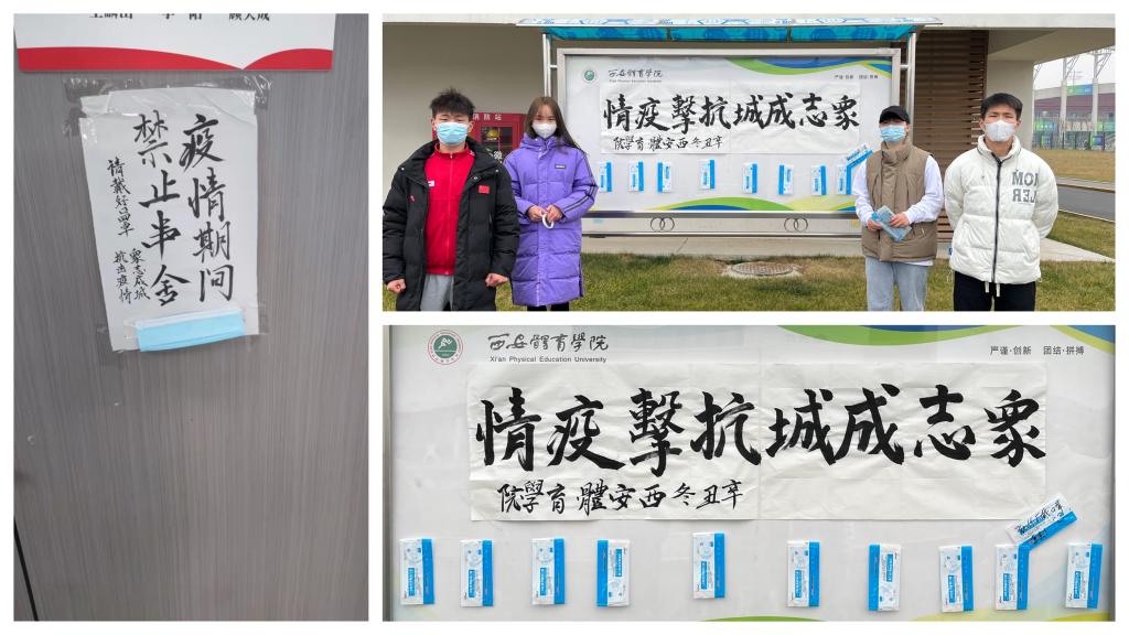 鄠邑校区全员核酸检测第四天,青年志愿者团队始终坚守在防疫岗位上,在校区人流量大的区域贴标语、提醒同学们少聚集、佩戴口罩、提高防疫意识。疫情防控,鄠邑校区在行动。