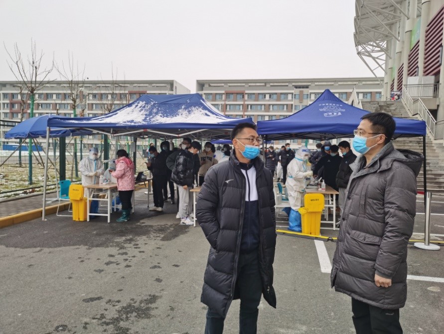 12月12日以来,在西安疫情趋紧,确诊病例高位增长,鄠邑区疫情情况复杂严峻态势下,鄠邑校区管委会书记孙峰、鄠邑校区管委会主任朱军坚守工作岗位,组织带领鄠邑校区管委会在岗人员,充分发扬“守土有责、守土担责”的担当意识,第一时间按照属地防疫要求和学校防控部署,全力部署做好核酸检测、隔离区条件保障、严格加强门禁管理、全面摸排统计人员底数、全力协调后勤保障,周密制定管控方案,撰发倡议协调推进二级学院精细管理等各方面的疫情管控工作。