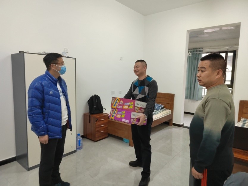 (张卫国慰问一线餐厅、物业、安保、基建、陕建等部门工作人员)