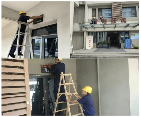 为确保工作高效有序并最大限度减少对学生的影响,管委会组织维修团队精准把握施工窗口期,主要利用学生上课时段进行安装。维修人员克服困难,携带专业设备逐楼作业,确保每个新号牌安装位置准确、牢固可靠且无安全隐患,高效完成全部楼栋标识   的更新任务。