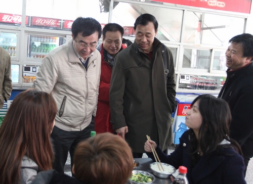 2月22日中午,院党委副书记朱元利,副院长雷新声在党政办、学工部、后勤集团有关负责人陪同下,检查了学生食堂开学初的工作情况。