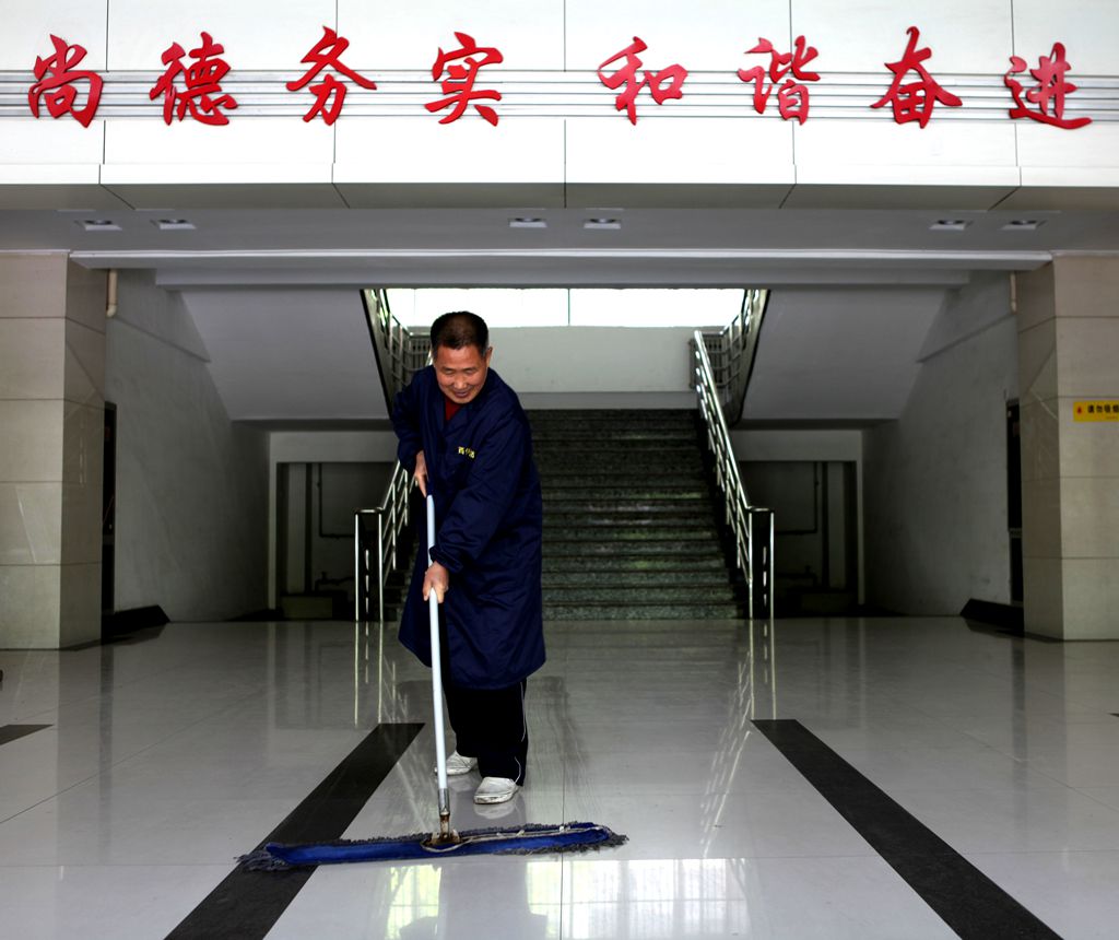 认真打扫教学楼卫生,为师生营造一个干净、整洁的教学环境
