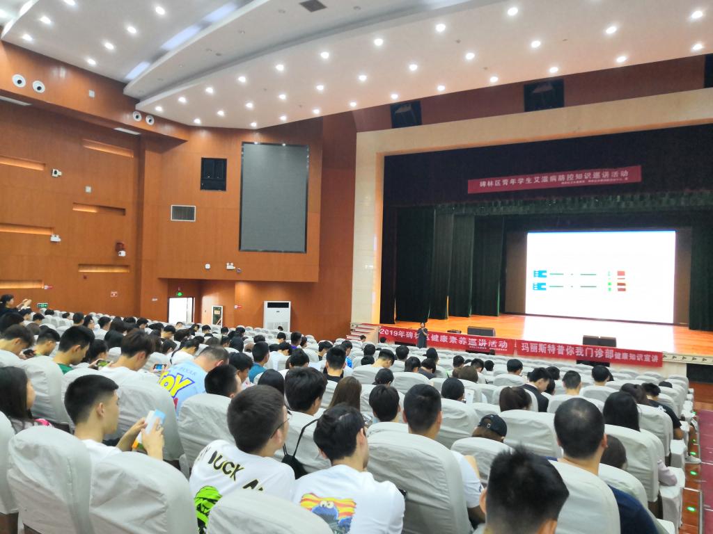 为做好我院学生艾滋病预防控制工作,有效降低大学生人群感染艾滋病的风险和比例,保证艾滋病防治知识全覆盖,按照省教育厅和省卫健委有关文件要求,2019年5月22日下午,由后勤管理处和学工部组织,并联合碑林区疾控中心艾防科和西安玛丽斯特普你我门诊部在学院艺术馆举办了大型艾滋病宣讲活动。活动由教学实验医院何昌谋主持,西安玛丽斯特普你我门诊部周安秦教授主讲。参加活动的有我院各系部院校1000多名在校大学生、多名辅导员老师,以及教学实验医院防保科和碑林区疾控中心艾防科工作人员。周安秦教授从青少年艾滋病的感染途径、艾滋病对青年学生身心的危害、什么是高危性行为、青年人如何防止性侵害等方面的艾滋病的防控知识对同学们进行了深入浅出地讲解。周老师以渊博的专业知识、鲜活的事例、生动的语言博得了同学们的阵阵掌声,为同学们上了一堂生动的健康教育课。