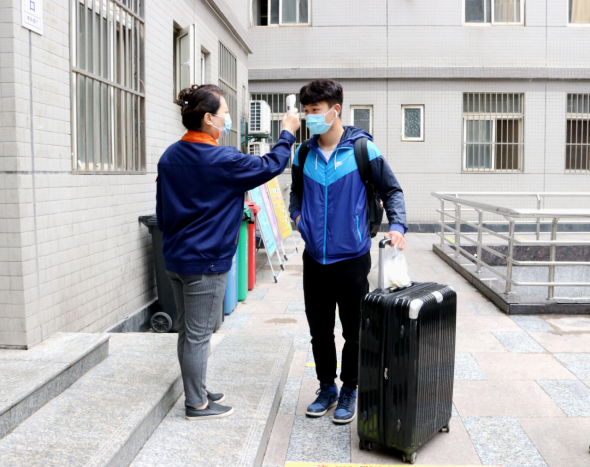 学生公寓截止5月10日18点,到校人数491名同学,其中一号楼85人,二号楼6人,三号楼46人,四号楼309人,五号楼31人,国际交流中心2人,六号楼12人。共检测出入学生体温1153人次。