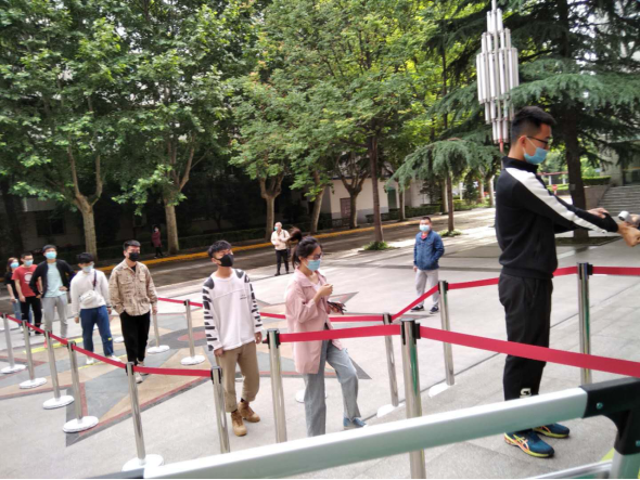 学生公寓截止5月11日18点到校人数627名同学,己有28名同学考完试离校回家,实际在校人数599名同学。离校学生宿舍水电均关闭,已通过安全检查。其中一号楼112人,离校13人。二号楼11人,离校1人。三号楼87人,离校2人。四号楼346人,离校11人。五号楼43人,离校1人。国际交流中心3人,六号楼25人。共检测出入学生体温2057人次。
