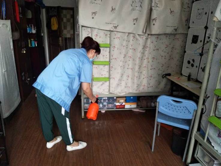 (一)后勤管理处(集团)学生公寓管理中心在对工作人员进行体温检测、登记后,严格按照校医院《学生公寓消毒指南》要求做好学生公寓清洁、消毒每日2次,通风工作每日3次,每次30分钟,以及学生体温检测工作。