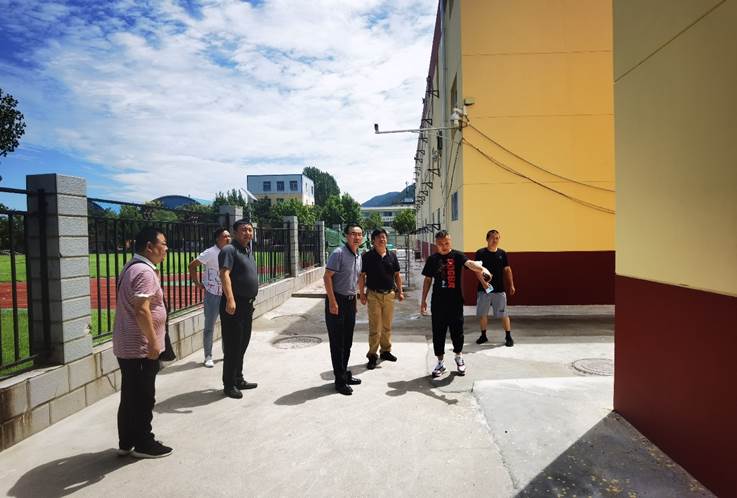 2、校领导、处领导实地查看沣峪校区学生公寓加固项目施工现场。