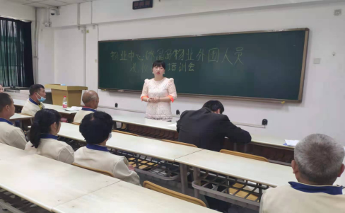 为进一步强化全体工作人员“服务育人”意识,提升物业服务品质、提高工作人员的综合素质、规范礼仪行为。物业中心于5月27日下午,在教学楼103教室开展物业人员礼仪礼节培训会,本次会议由物业中心副主任翟青艳主持召开。