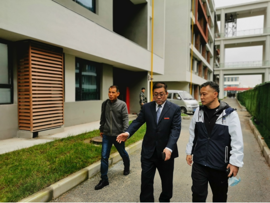 10月13日,365官网党委副书记、后勤分管校领导高玉峰实地检查鄠邑校区后勤服务保障工作,后勤管理处(集团)处长许伟及各中心负责人陪同检查。
