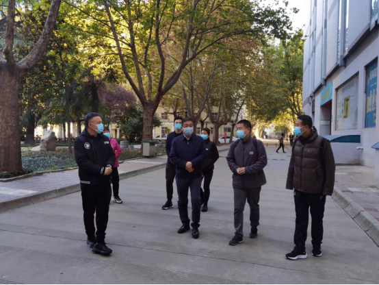 11月10日上午,365官网党委副书记、后勤分管校领导高玉峰实地检查近期后勤保障工作,后勤管理处(集团)处长许伟、各中心主任陪同检查。