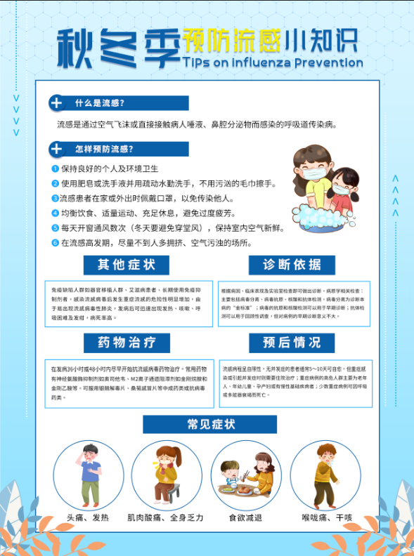 后勤管理处(集团)学生公寓管理中心主动做为,积极开展宣传秋冬季预防流感知识,通过在学生公寓和公共场所张贴预防和控制秋冬季传染病预防知识(宣传资料),保护广大师生身体健康,维持学校正常教学、生活秩序。