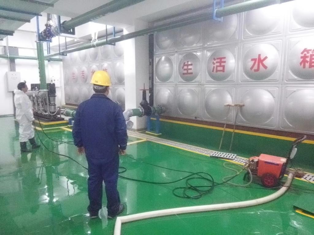 2023年1月1日,后勤管理处(集团)保障中心对鄠邑校区水库进行全面清洗消毒,保障师生饮水安全。