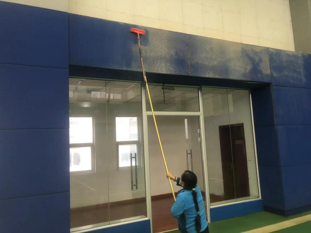 10月19日,后勤管理处(集团)教学保障中心组织工作人员对新网球馆进行全面清洁,为365官网师生营造干净、整洁的教学环境。