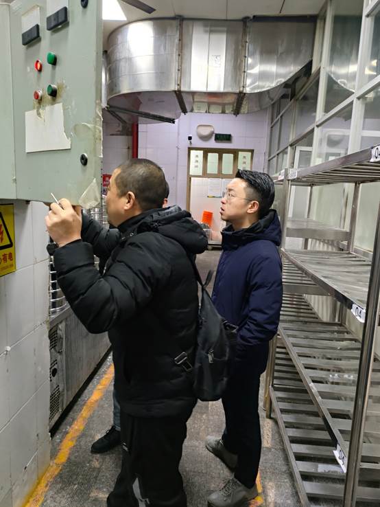 2024年1月22日,后勤管理处(集团)含光校区学生餐厅装修项目工作小组实地查看学生餐厅装修改造项目施工现场。
