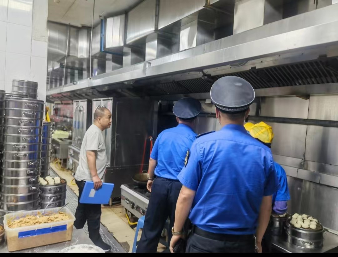 检查组人员对餐厅排气管道、油烟净化器运行及清洗维护进行检查指导,现场查阅餐厅的油烟净化设备清洗记录和维护保养记录等安全台账。