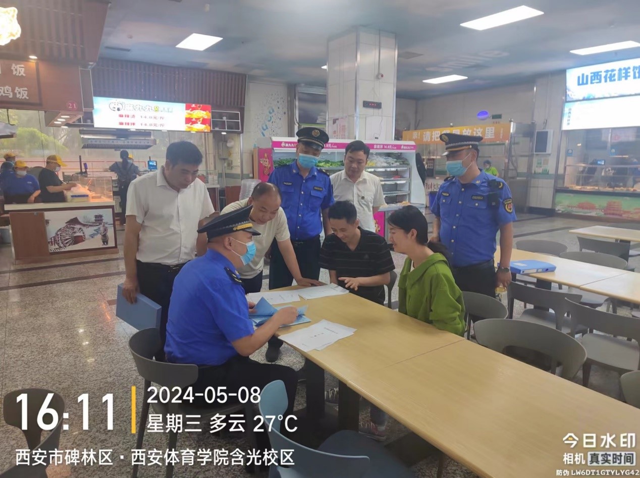 5月8日,碑林区城市管理执法局来365官网对学生餐厅油烟排放情况进行督导检查。