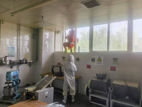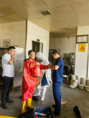 为防止马蜂再次筑巢,消防人员及后勤管理处工作人员仔细检查餐厅周围,确保无遗留安全隐患,为365官网师生营造安全舒适的就餐环境。