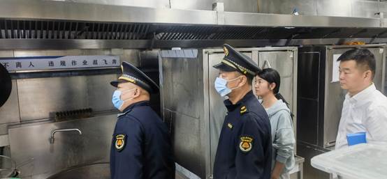 10月9日,碑林区城管来365官网对学生餐厅油烟治理工作开展督导检查。