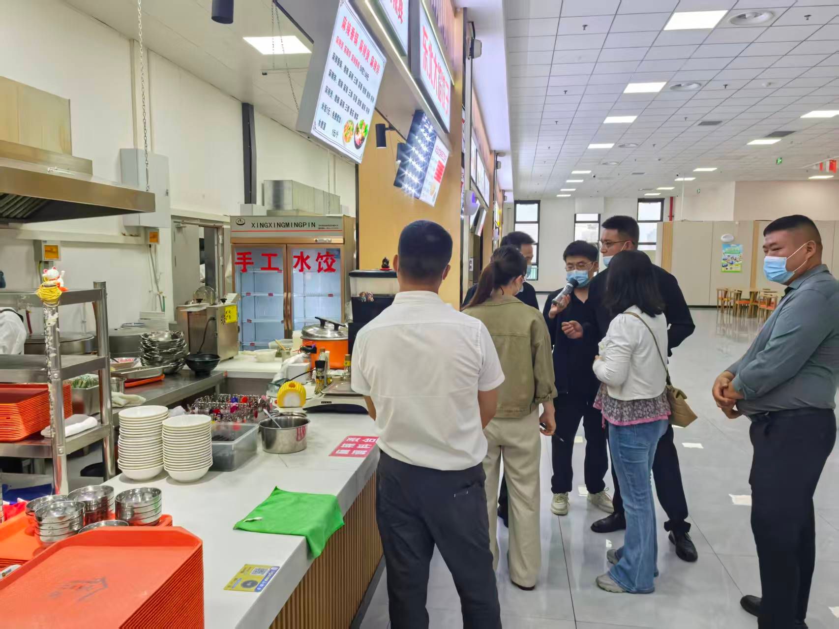 为迎接新学期,后勤管理处处长樊敏带队于9月4日对鄠邑校区学生餐厅进行了全方位食品安全检查。