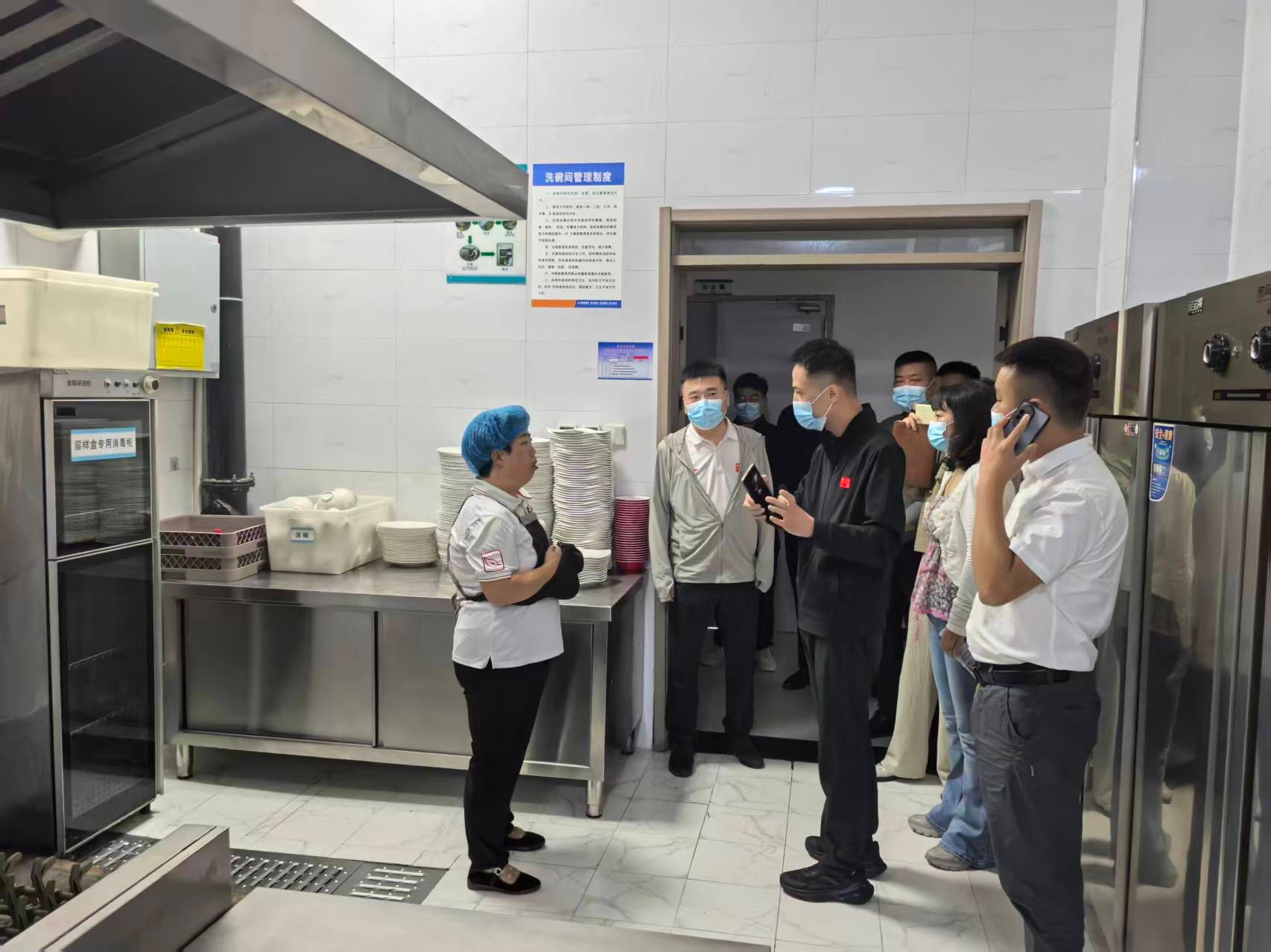 此次检查覆盖餐厅所有楼层,重点查验了洗消间设备运行、库房食材贮存、留样间规范管理、食品添加剂专人专箱管理等环节。同时,对餐饮工作人员的健康证持证情况进行了抽查。