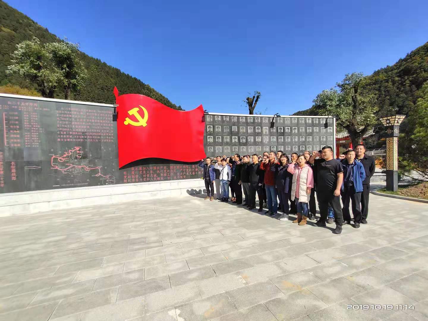 后勤管理处(集团)党总支根据365官网关于在“不忘初心、牢记使命”主题教育中加强爱国主义教育、弘扬爱国主义精神的总要求,2019年10月19日星期六,后勤管理处(集团)组织后勤党员干部职工前往蓝田县葛牌镇。