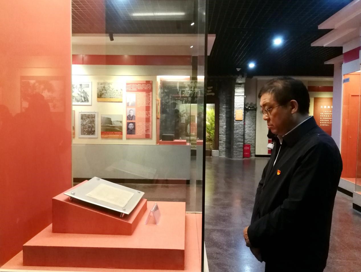 校党委副书记高玉峰驻足观看纪念馆藏品