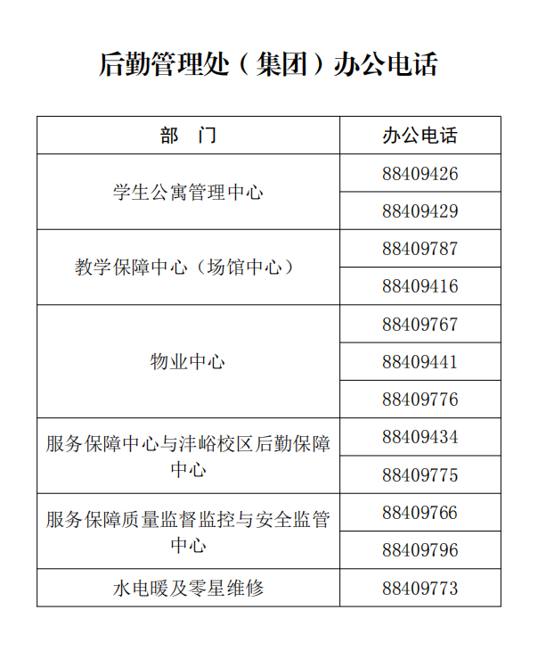 后勤管理处通讯录 v