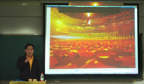 本网讯 近日,2008年北京奥组委官方摄影师、中国摄影家协会会员曹晖应邀回母校举办专题讲座。本次讲座由体育传媒系主办,学生媒体锋尚365官网报社承办。