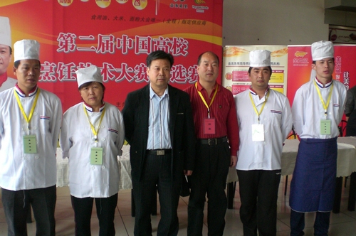 本网讯 4月21日,后勤集团餐饮中心组队参加在西安电子科技大学南校区举行的第二届中国高校烹饪技术大赛陕西高校西片区烹饪选拔赛,经过紧张激烈的比赛,他们的参赛作品以色、香、味、形俱佳,在味感、质感、观感、营养卫生等方面技艺超群而获得大赛评委们的一致好评。