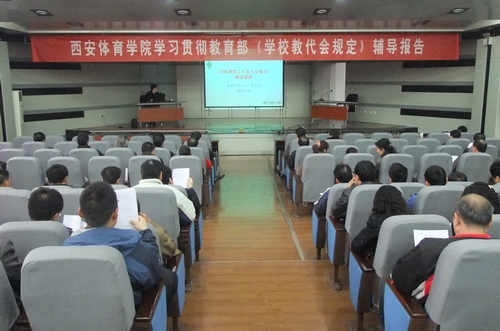 本网讯为深入学习贯彻国家教育部《学校教职工代表大会规定》精神,院工会于3月28日在教学楼一楼报告厅举办了教代会代表培训学习活动。活动邀请陕西省教育工会理论研究会副秘书长、原长安大学工会副主席雷占荣同志作题为《新教代会规定解读》的辅导报告,学院80多位教代会代表参加了培训学习。