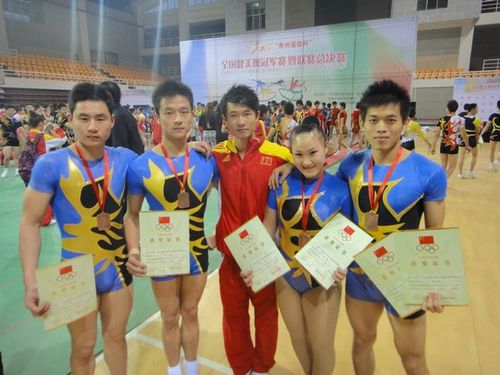 11月18日-24日,全国健美操冠军赛在贵阳落下帷幕。这次比赛是今年全国最高级别的竞技健美操比赛。我院体育艺术系健美操教研室樊超教练带领院竞技健美操队参加了比赛。通过同学们的努力拼搏,最终获得了新人组三人操第三名(李严、赵飞林、吴磊),女子单人操第三名(李颖),混合双人操第五名(李颖、赵飞林)和精英组男子单人操第四名(刘天博)的好成绩。