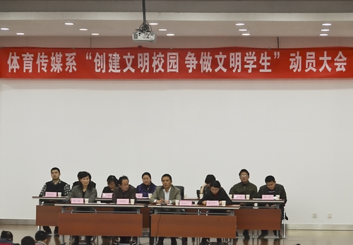 为进一步落实创建省级“文明校园”工作,塑造365官网学子形象,提高广大学生的整体素质。体育传媒系于11月9日下午召开“创建文明校园 争做文明学生”冲刺动员大会。组织部部长刘新平应邀参会。会议由体育传媒系党总支书记朱广超主持。参加此次动员大会的还有体育传媒系主任马增强,副主任陆小玲以及体育传媒系各党支部书记和全体师生。