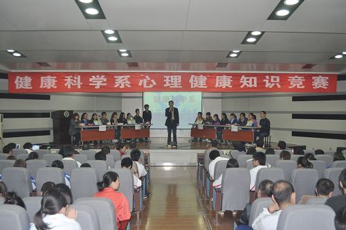 为进一步提高学生心理健康知识的应用水平,深入开展省级“文明校园”创建活动,10月27日晚, 健康科学系在教学楼一楼报告厅举办了“健康科学系心理健康知识竞赛”活动。教务处、健康科学系、团委有关负责人及相关专家,教学督导组有关负责同志应邀出席了活动。健康科学系在全系范围内选拔产生的36名选手,分为4支参赛队参加了比赛。