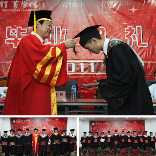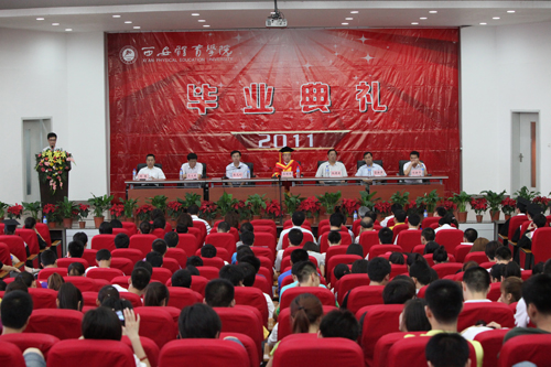 毕业典礼上苏院长发表了热情洋溢的讲话,祝贺毕业生们顺利圆满完成了学业,并对大家提出希望和寄语:第一、学会做人。第二、完成角色转换。第三、不断学习和充实自己。第四、文明离校、安全离校。苏院长祝愿毕业生在人生广阔的舞台上取得优异的成绩,随后为毕业生代表正冠拨苏,授予学士学位。苏义民副书记宣读了2011届陕西省优秀毕业生、优秀学生干部名单及奖励办法。