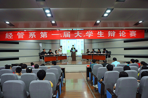 6月14日晚,体育经济与体育管理系首届大学生辩论赛在一楼报告厅举行。辩论赛评委由督导组专家程致屏、惠郭俭教授,经管系、学报编辑部、团委负责人担任。