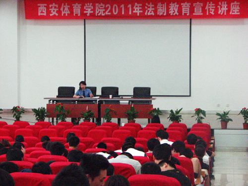 为积极配合我院德育工作上台阶工程,促进创建省级“文明校园”,4月27日,院保卫处、学生工作部邀请到西安市碑林区检察院张方、吴静两位检察官,在教学楼五楼报告厅为院运动训练专业08级500余名学生作了有关法律知识讲座。讲座用生动的语言、典型的案例,使同学们的法律知识进一步丰富,法律意识进一步增强,运用法律武器的能力进一步提高。