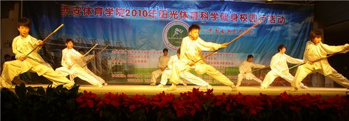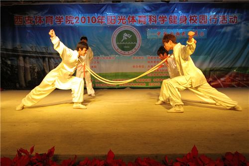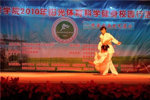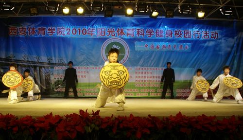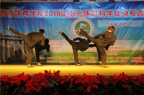 12月29日,我院团委、武术系、院学生会在大学生活动中心组织举行了“阳光体育科学健身校园行”中国古典武艺展示活动。原陕西省副省长巩德顺,陕西省人民检察院副检察长王英杰等省、市领导,院长苏明理、党委副书记朱元利到场观看了表演。在近一个小时的表演中,武术系的同学们向观众展示了集体盾牌刀、破风刀对劈、头开钢条等三十多个古典武艺项目,其中银枪刺喉表演将整个活动气氛推向高潮,赢得了在场观众经久不息的掌声。