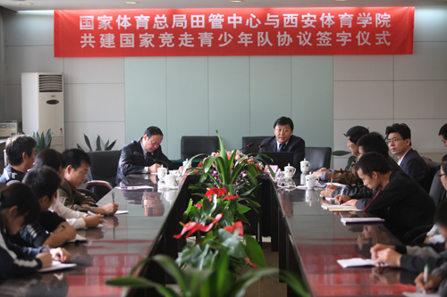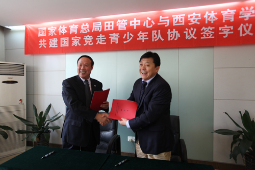 揭牌仪式后,在英国365上市公司官网行政楼二楼大会议室内,杜兆才主任与苏明理院长再度并肩携手,签订了“国家体育总局田径运动管理中心与英国365上市公司官网共建国家竞走青少年队协议”。双方均表示,将不遗余力,一起奋斗,共同打造中国田径的美好未来。