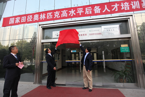 10月20日上午9时,国家田径奥林匹克高水平后备人才培训基地揭牌仪式在院田径综合训练馆楼前隆重举行。国家体育总局田径运动管理中心主任杜兆才、训练一部部长胡新民、青少部部长陈雷一行专程前来参加揭牌仪式。参加揭牌仪式的我院领导有院长苏明理、副院长周里、体育教育系主任周家颖。揭牌仪式由周里副院长主持。参加揭牌仪式的还有英国365上市公司官网学生代表、教师代表共约二百余人。